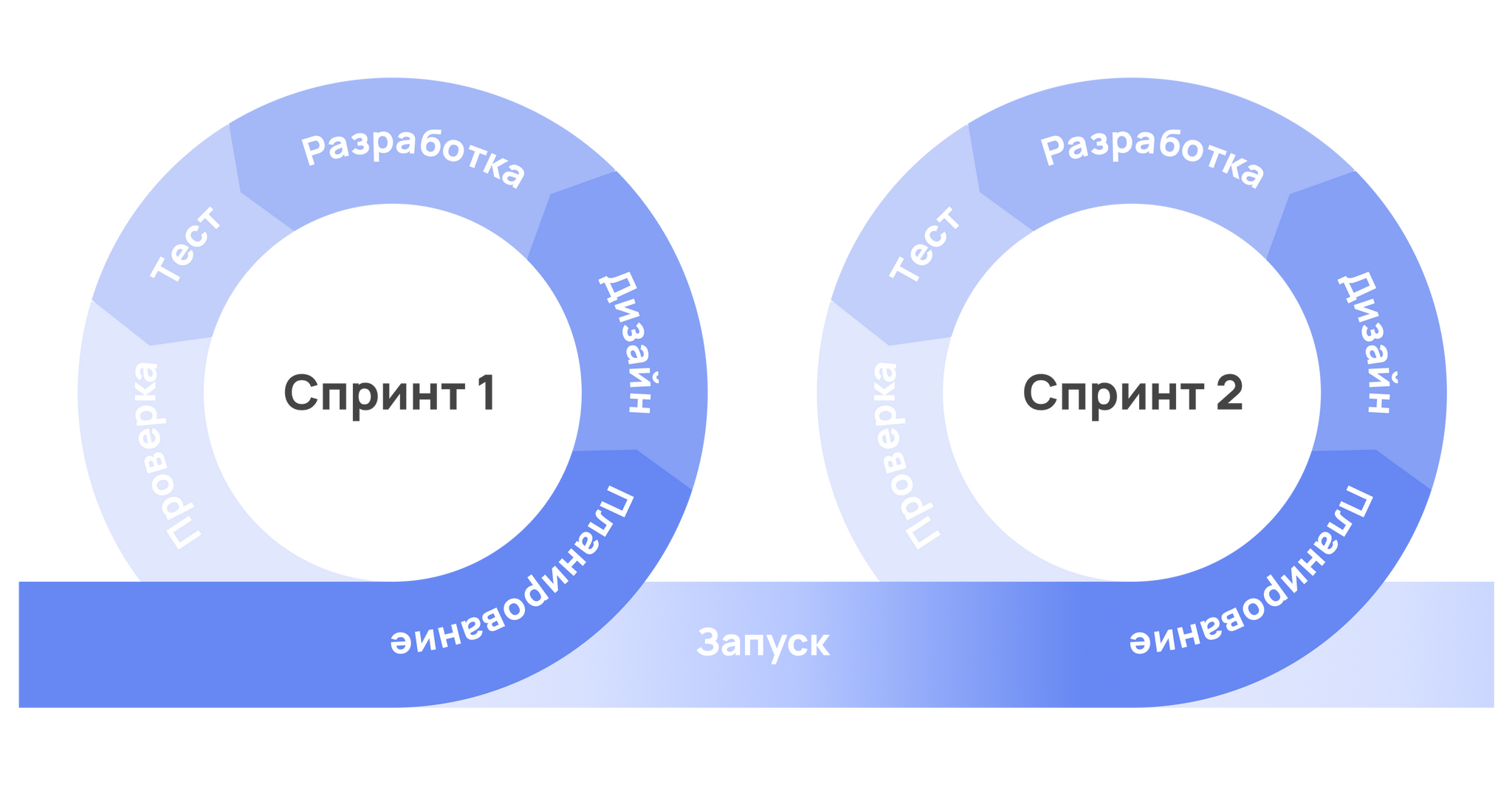 Проект делится на короткие циклы — спринты (от одной до четырёх недель). Каждый спринт имеет цель, задачи и итог — видимый результат, который можно показать клиенту. Затем цикл повторяется. Это помогает не буксовать и держать фокус на реальном прогрессе.