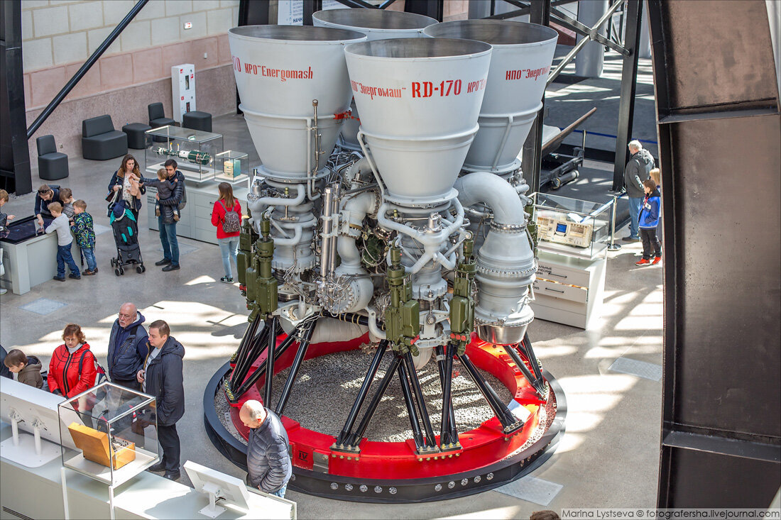 Правильно. И чтобы развить скорость 38 километров в секунду с ускорением 10 метров на секунду в квадрате (то есть без перегрузок, в «один же»), нам понадобится всего-навсего 3800 секунд работы ракетного двигателя. То есть час с небольшим. А с перегрузкой в «три же» – и вовсе 20 минут! Хм... Всего 20 минут, то есть 1200 секунд, да... Возьмём, скажем, мощный российский ракетный двигатель – РД-170. За одну секунду этот двигатель сжигает 2 с половиной тонны топлива (точнее, горючего и окислителя, но пусть будет просто «топливо»). Умножаем 1200 секунд на 2 с половиной – сами подсчитаете или подсказать? Три тысячи тонн топлива. Одного только топлива!