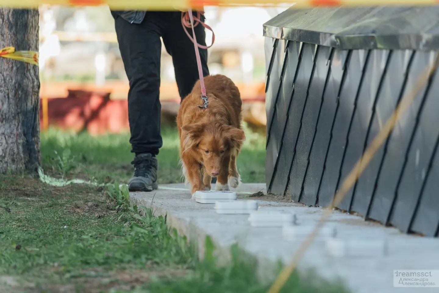 В нём есть отдел А, где нужно проложить для собаки след и задача собаки пройти по нему до конца следа.