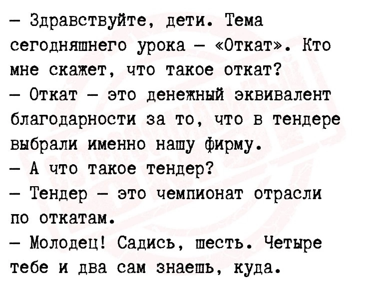 203 DELETED Анекдоты Юмор Что такое откат? 1 год назад Картинка с текстом Анекдот Еврейский анекдот Юмор Люди Мысли Жизнь Повтор 9 9 1 Ещё 0