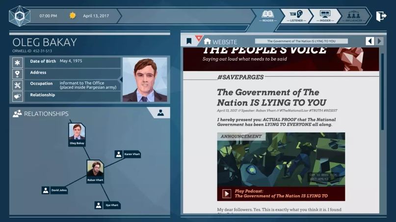 Именно правда в Orwell является основным предметом геймплея, ведь от того как мы будем воспринимать, анализировать и использовать получаемые сведения, от того какую картину правды мы нарисуем, изменятся и события.