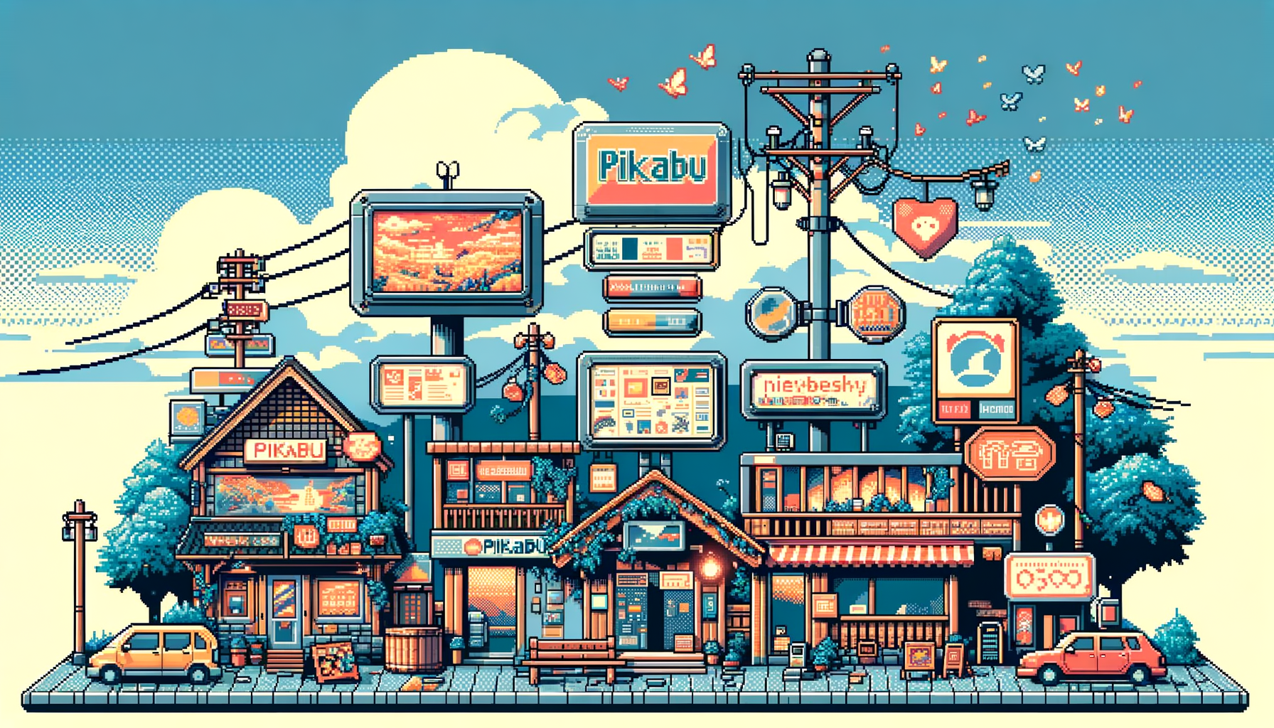 Изобрази сервис upgraide.me с несколькими нейросетями в виде простой иллюстрации в стиле старой компьютерной игры