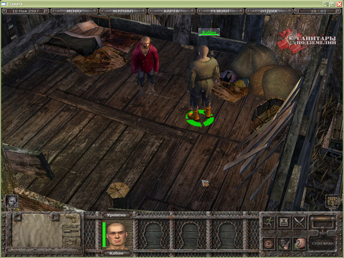 Один из таких проектов — Санитары Подземелий, самостоятельная игра, взявшая за основу книгу Пучкова «Гоблина». И в сеттинге, и в механиках, и графике чувствуется наследие Fallout. Хоть в мире игры апокалипсис не случился, а события разворачиваются на планете-тюрьме, знакомые черты сохранялись, переплетаясь с огромным количеством специфичного юмора, воровских понятий, неоднозначных персонажей и не слишком сильной даже для своего времени графикой.