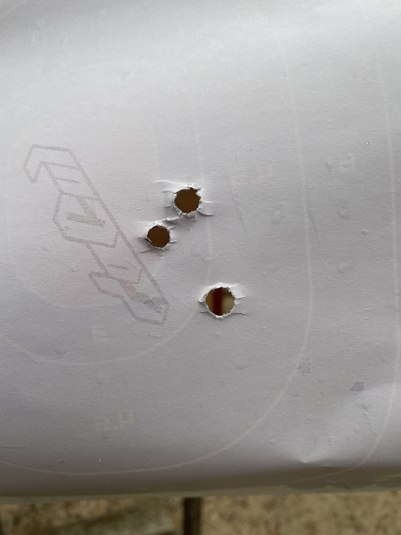 Напомню, что это все попадания пулями одного и того же калибра, хотя отверстие в красной зоне и кажется меньше диаметром.