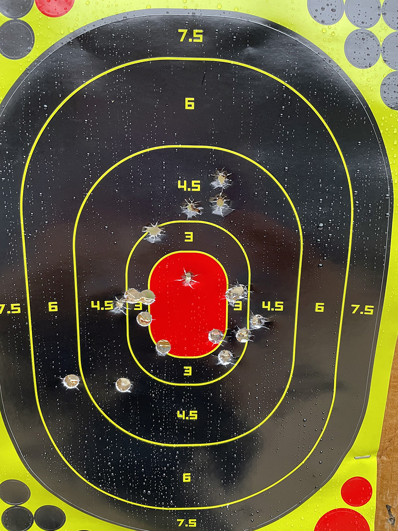 Вот ещё для наглядности. Слева - попадания wadcutters, справа - semi-wadcutters, и сверху - обычная оболочка (одну смазал, она левее улетела) :-) Но разницу видно.
