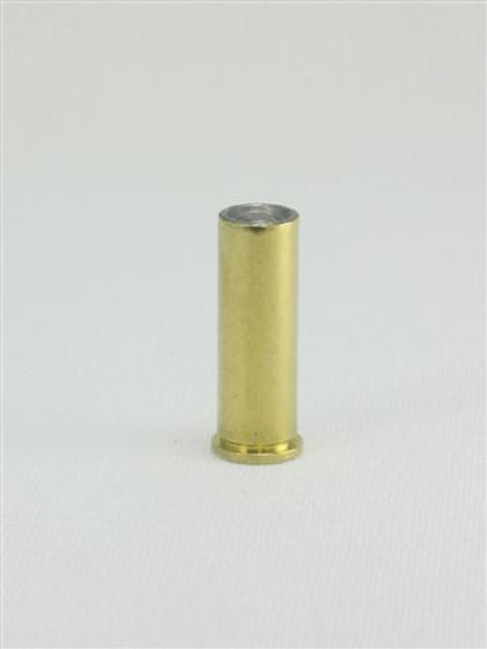 Как видите сейчас у меня этих патронов много, а тогда я совсем не знал какие мне купить для револьвера - слишком много их разных! Пошёл в оружейный посоветоваться, и там мне и сказали - ха, ты же просто в тире хочешь стрелять? Так возьми wadcutters, они лучше всего для тира подходят!! При этом я ваще не знал, что это за зверь такой и для чего они нужны. Но купил что посоветовали. :-) Принёс домой - смотрю - странные какие-то, а где пуля-то, почему она не торчит из гильзы? :-) Вот так эти патроны выглядят.