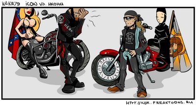 всего-лишь православные байкеры-коммунисты, ты что, редко их видишь?