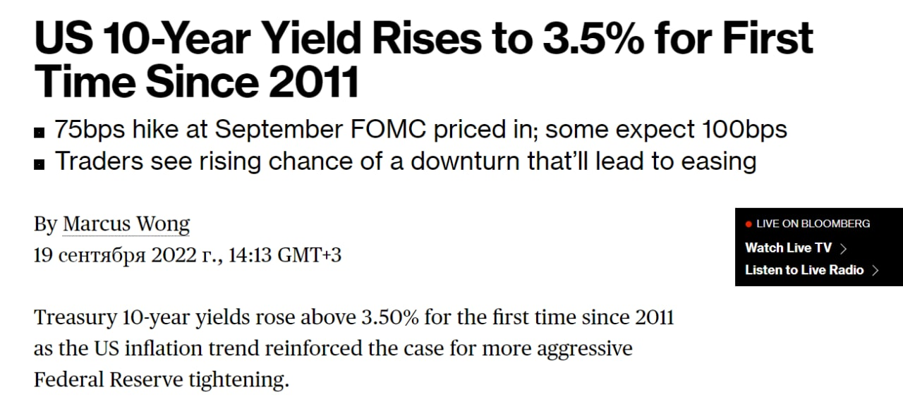 А американцы испытывают удар за ударом. 10-ти летние облигации показывают рекордную доходность — 3,5%. Первый раз с 2011 года.