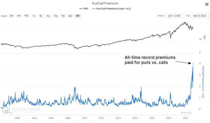 Трейдеры никогда не тратили так много на ожидания обвала, сообщают аналитики из SentimentTrader