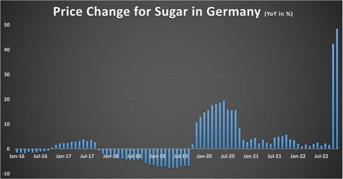 Цены на сахар в Германии туземунят. 42% в октябре и 50 в ноябре. Ну т.е. год к год. Не 50% за один ноябрь.