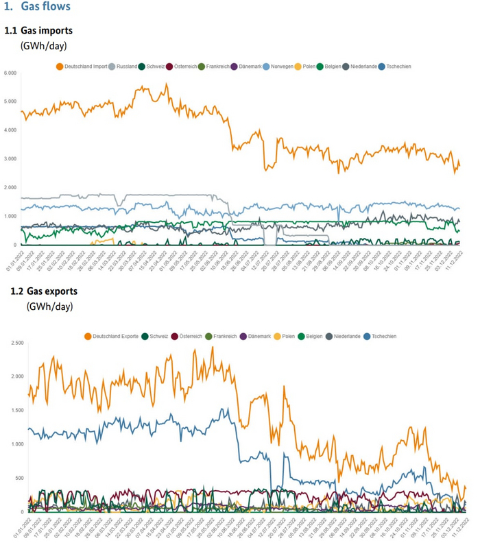 Bundesnetzagentur (Федеральное сетевое агентство по электроэнергии, газу, телекоммуникациям, почте и железным дорогам) дает нам следующую картинку по газу в Германии на 12 декабря.