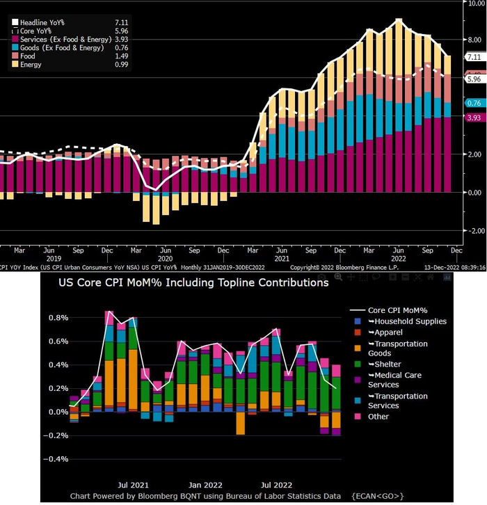 Инфографика, отражающая годовую инфляцию в США с визуализацией весовых долей.