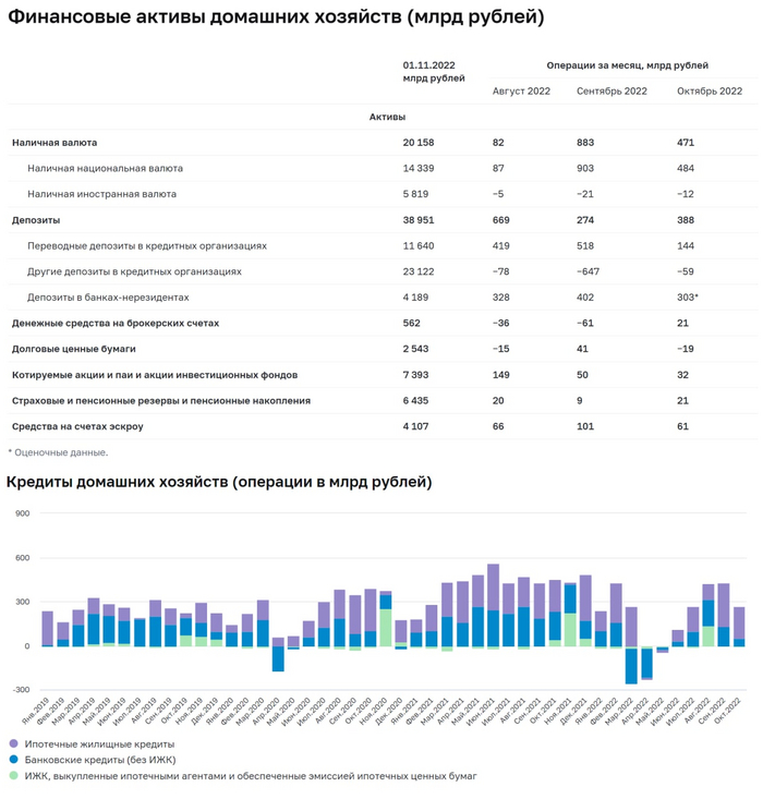 Сведения по финансовым активам домохозяйств за октябрь 2022