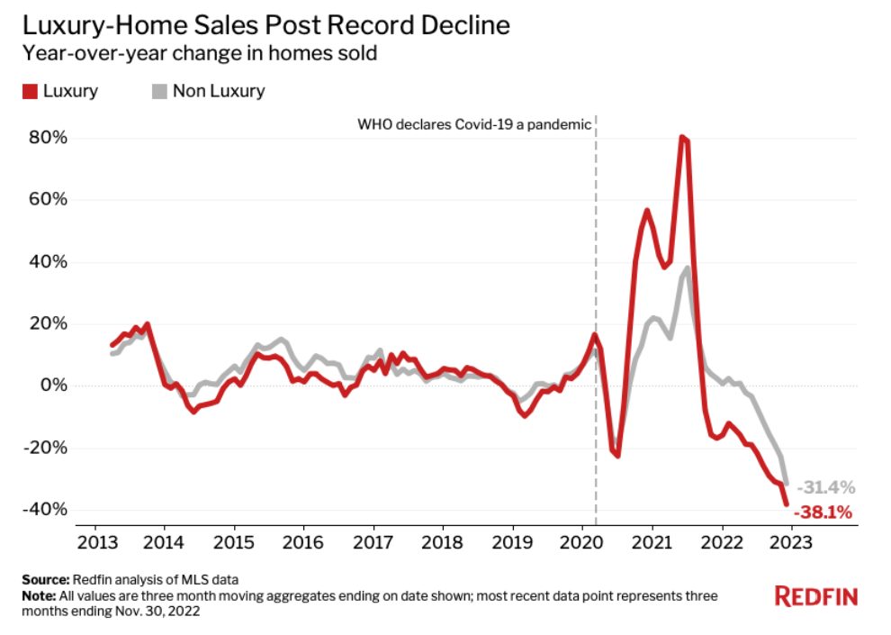 ▪️ Был слишком сильный рост продажи элитки в пандемию, вот и снижение получилось мощнее
