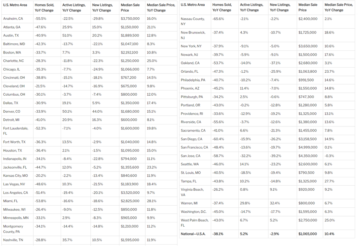 Что Redfin считает за ЛУХУРИ-недвижимость? Это все дома, входящие в верхние по цене 5% домов, выставленных на продажу. НЕ-ЛУХУРИ (на картинке серым) - 35-65 прецентиль. Вот их продажи упали меньше - 31,4%.