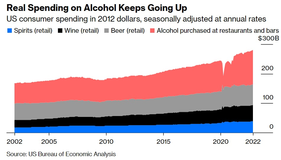 На картинке траты американских потребителей на алкашечку с учетом сезонных колебаний и ставки.