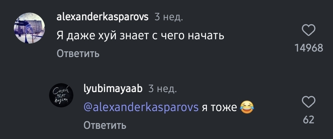 Всегда, когда вижу нечто подобное, лезу смотреть в комменты ибо там то, что станет нетленным 😊