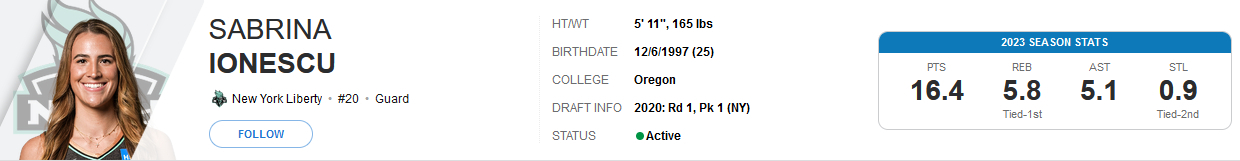 Есть абсолютный рекорд по трехам на баскетбольных играх всех звёзд — Сабрина набрала 37 очков, сделав 25 попаданий из 27, просто машина! Причем, рекорд этот и среди женщин и среди мужчин: даже у рекордного Стэфа Карри 2021 было меньше — 31