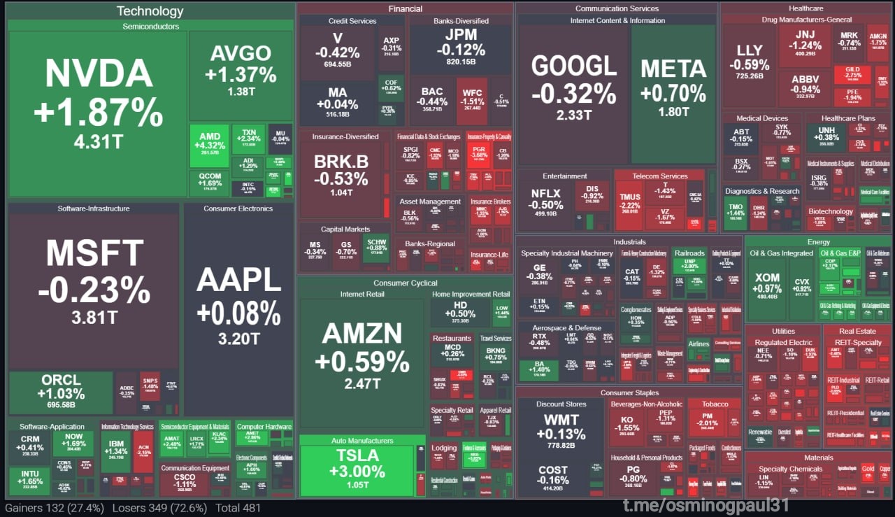 Фьючерсы на акции 🇺🇸США во вторник оставались стабильными после смешанных результатов на Уолл-стрит в начале недели. В понедельник индексы S&P 500 и Nasdaq Composite выросли на 0,02% и 0,33% соответственно, при этом оба индекса достигли новых рекордных максимумов. В то же время индекс Dow Jones снизился на 0,14%. Рынок отреагировал на новое торговое соглашение между 🇺🇸США и 🇪🇺ЕС и готовился к насыщенной неделе, полной корпоративных отчетов и ключевых экономических событий. Президент Трамп объявил о торговом соглашении с 🇪🇺ЕС, которое устанавливает базовую пошлину в размере 15%, в то время как оптимизм в отношении возможного продления торгового перемирия между 🇺🇸США и 🇨🇳Китаем усилился. Инвесторы также с нетерпением ждали отчетов о прибылях крупных технологических компаний, включая Meta, Microsoft, Apple и Amazon. Между тем, внимание переключается на решение Федеральной резервной системы по денежно-кредитной политике, которое будет принято в среду, и трейдеры будут ждать сигналов о возможном снижении ставок в сентябре. Ключевые экономические данные по инфляции PCE и отчет по занятости за июль также будут опубликованы в конце недели.