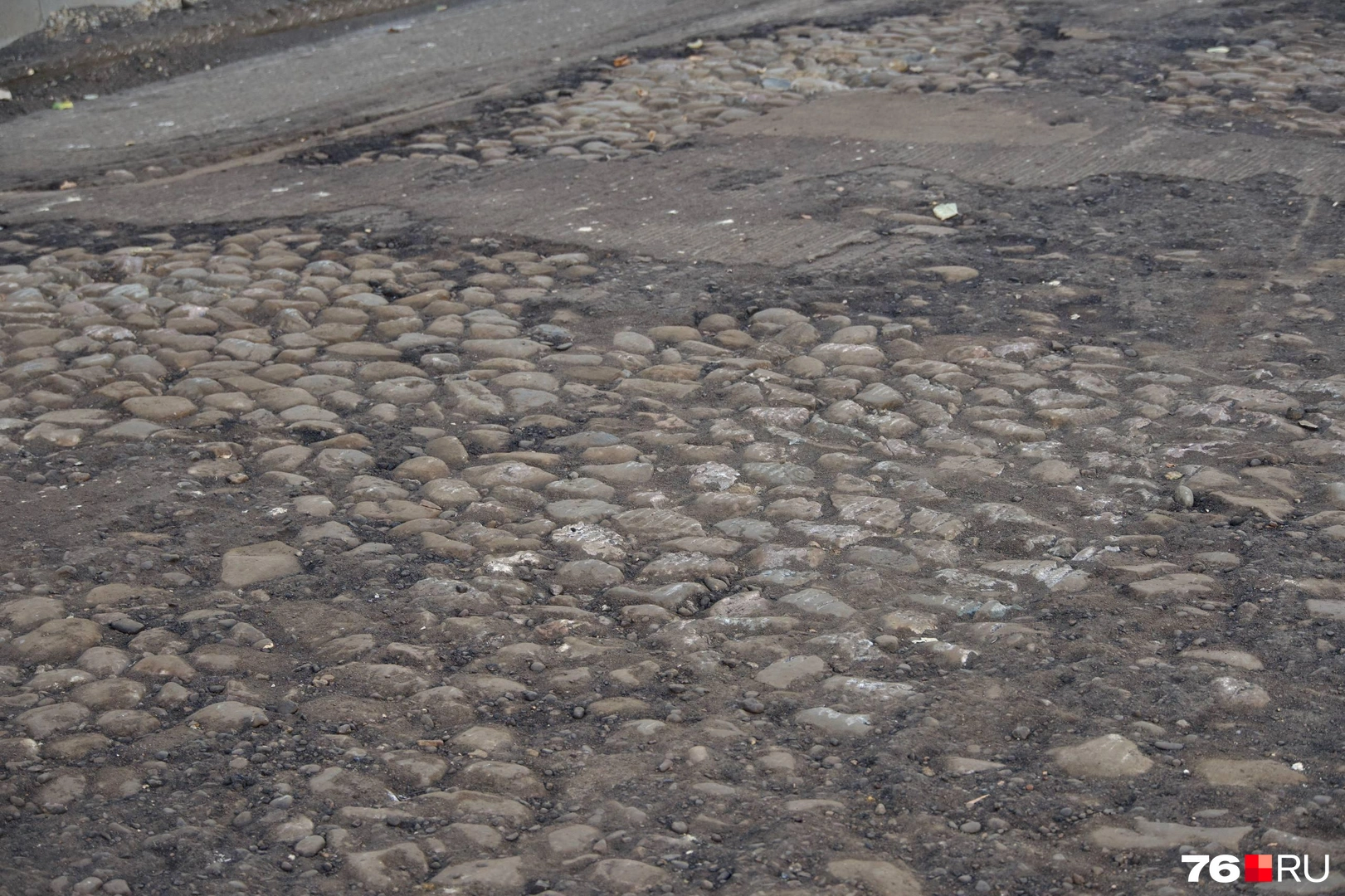 В центре Ярославля на перекрестке улиц Победы и пр Октября стали снимать асфальт, а под ним дореволюционная брусчатка. Она может и крепкая, но это говорит о том, что ни при Союзп, ни при демократах "подушку" не меняли ни разу. Может брусчатка и прочная, только ей 100 лет и она явно не была расчитана на многотонные грузовики.