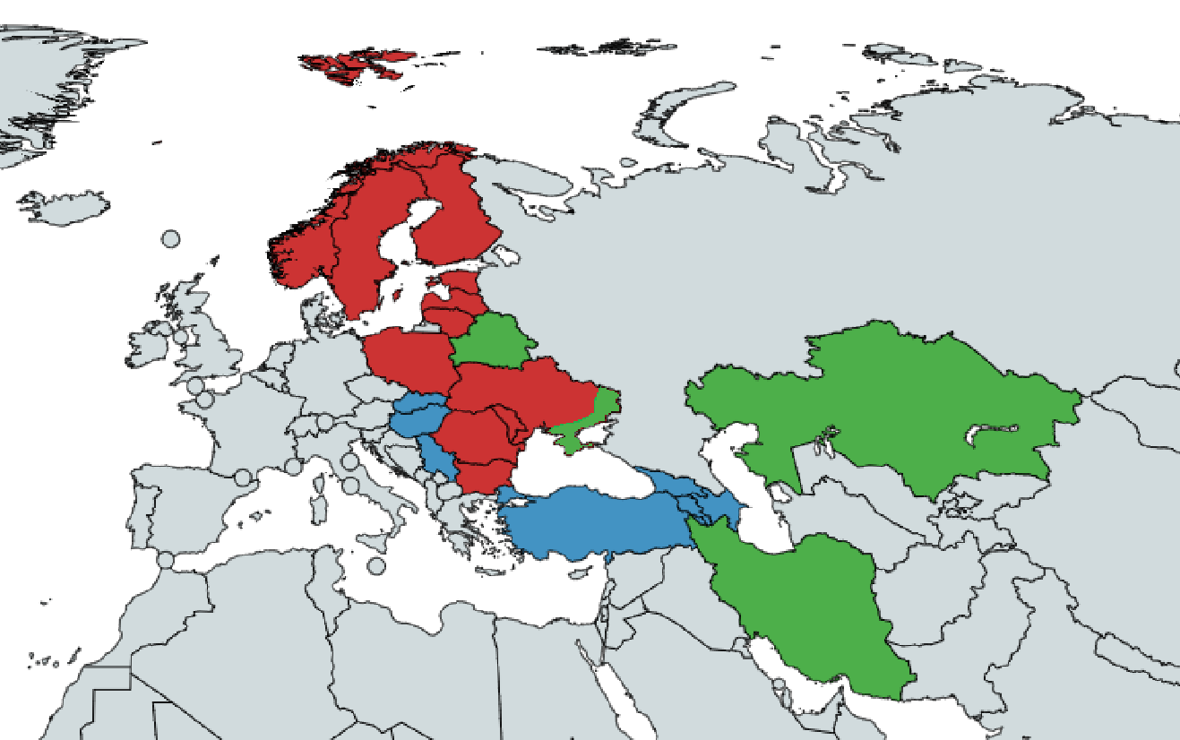Турция и Иран успешно проводит свою политику, совместно с Западом в странах Средней Азии. Страны Средней Азии ограничивают свои контакты с Россией (https://360.ru/tekst/mir/dva-stula-i-velikij-turan/)