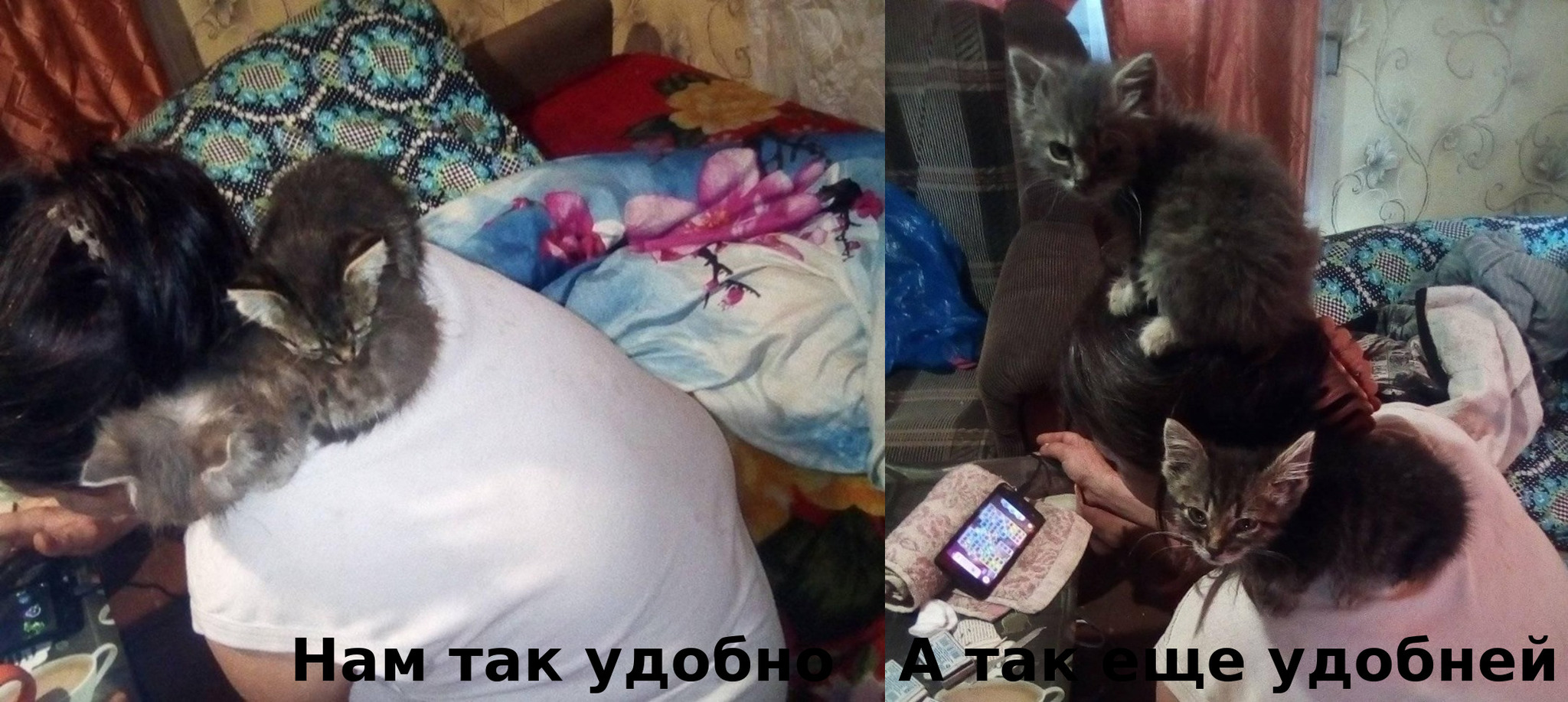 Вот так любят отдыхать мои котятки. Никого не спрашивая, размещаются сами в удобных точках, согласно своим желаниям. Стоит скинуть -- приходят опять. И опять. И опять! )))