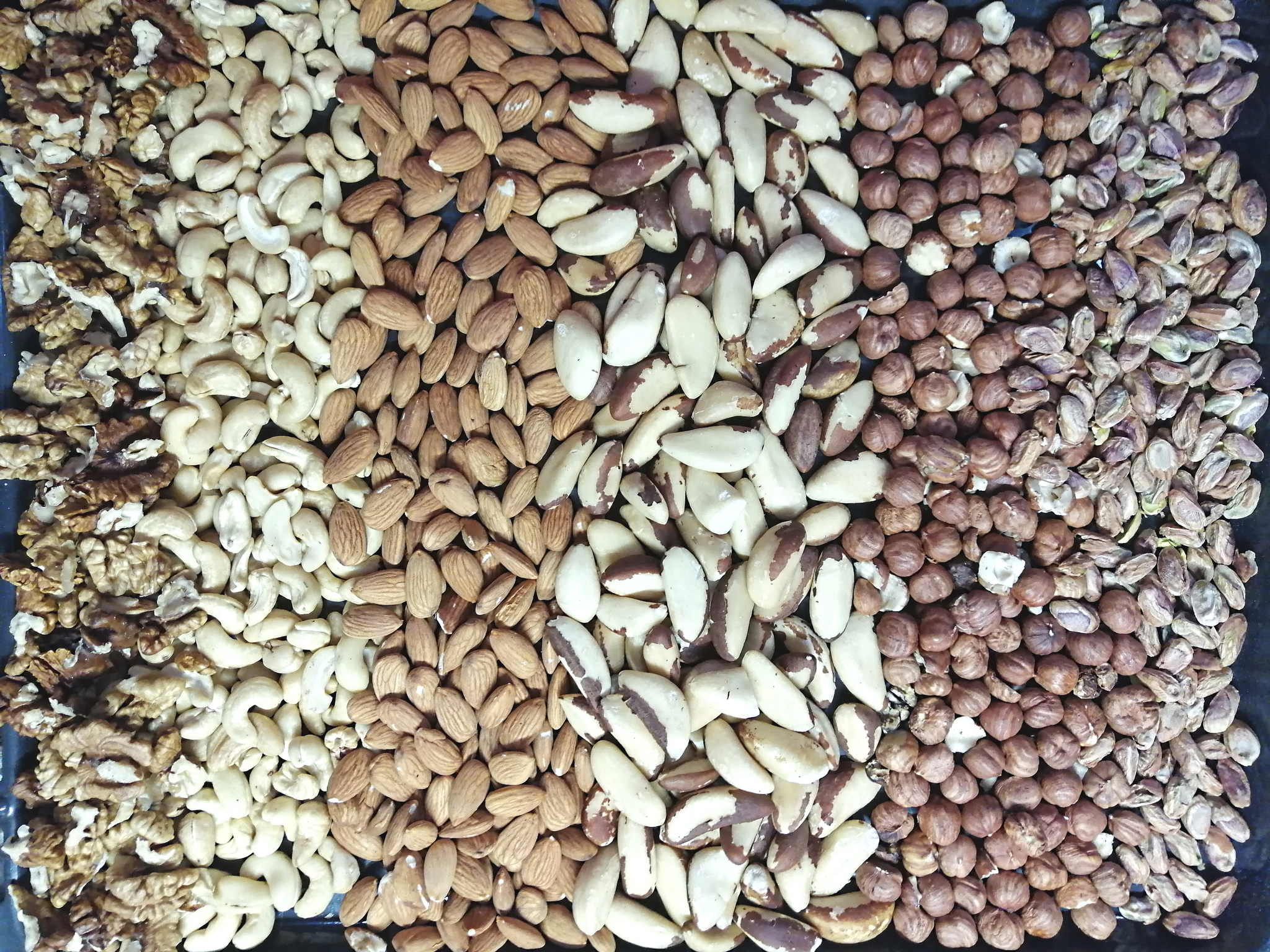 На новый год решил своей семье собрать кульки из полезных продуктов. Поехал на рынок и купил разные сорта орехов.