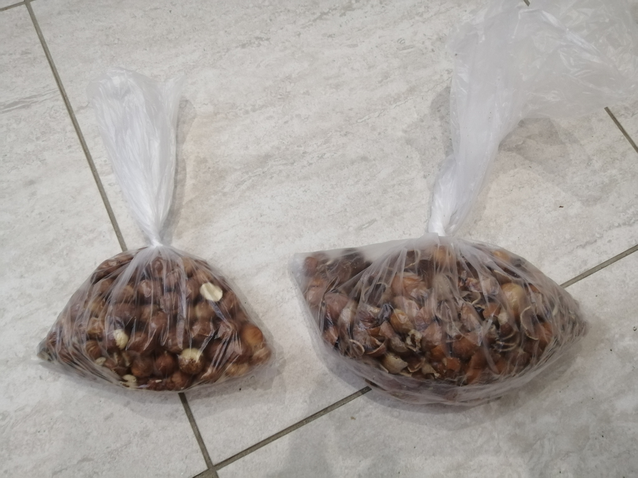 Скорлупы получилось, по внешнему виду, в два раза больше чем орехов.