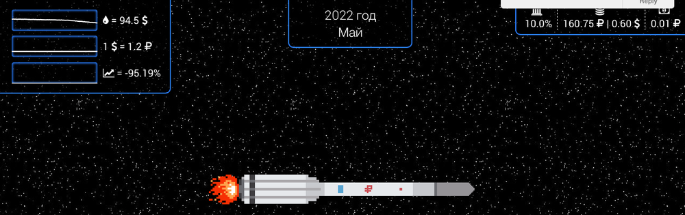 Курс рубля там сильно привязан к нефти, а ракета олицетворяет экономику. Если начать просирать полимеры - ракету станет бомбардировать логотипами банков и др.