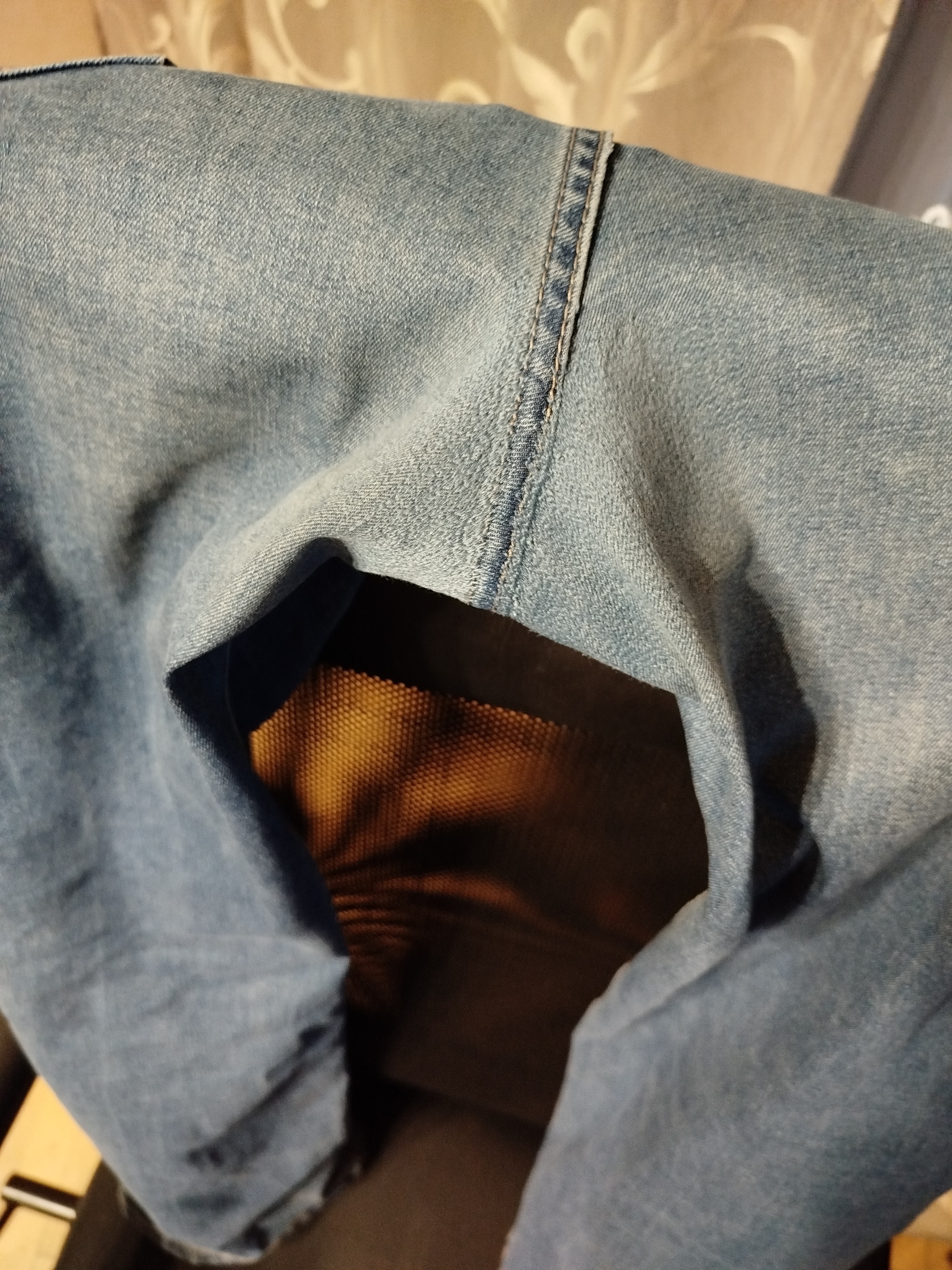 3. Потёртые между ног джинсы можно починить.