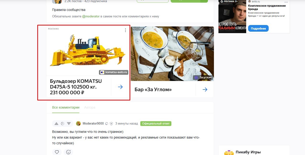 Каюсь нажимал на рекламу бульдозера за 231млн Р, при чём у вас же) Опять он кстати, не хочет меня терять