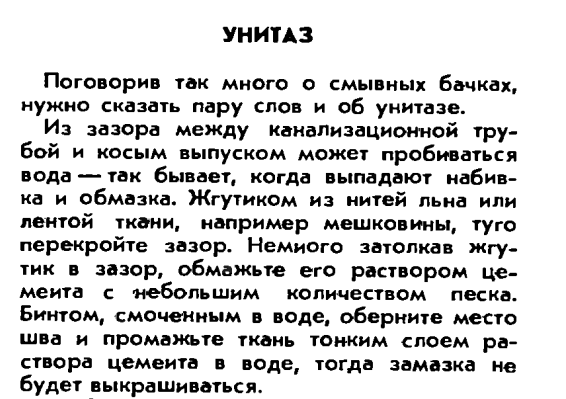 Был такой сантехник-литератор Волков в советское время. Писал советы в "Науке и жизни" и даже какую-то книгу сваял. Советы его в очень значительной степени устарели, вместе с тогдашней сантехнической номенклатурой и материалами, но писал классно, и даже сейчас почитать интересно )