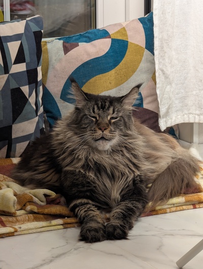 3. Интернет описывает издаваемые мейн-куном звуки, как мелодичную, нежную трель. Я же могу описать это, как звуки голубиной стаи, по которой едет трактор.