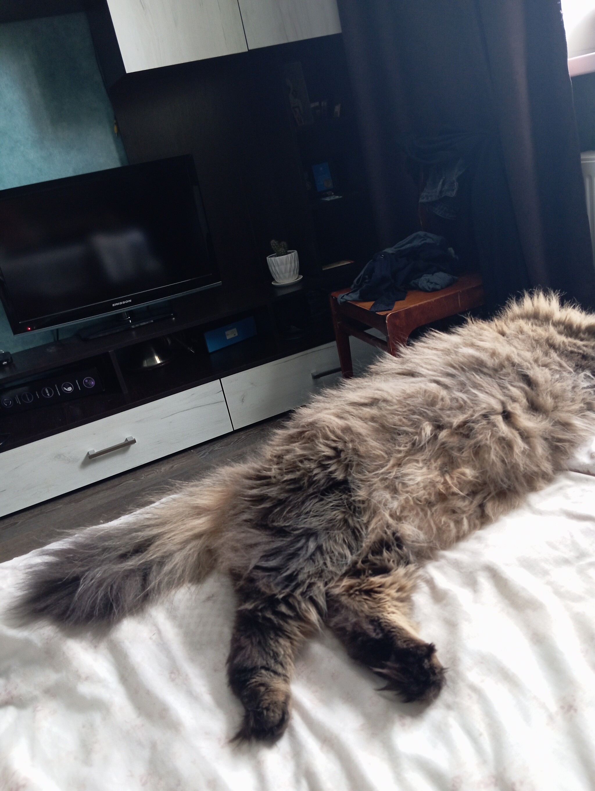 У нас длинношерстный шотландец такой. Хвост длинный и пушистый. А так как кот любит спать около раковины на кухне, то хвост у него регулярно мокрый. Сам лежит на столешне, а хвост в мойке в какой-нибудь посуде с водой