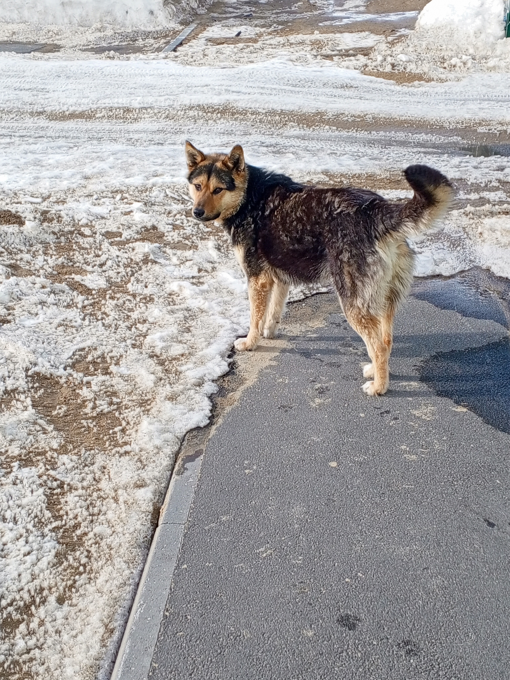 И тут с зади ко мне подходит пес. Смотрит на меня спокойным взглядом, слегка виляет хвостом.