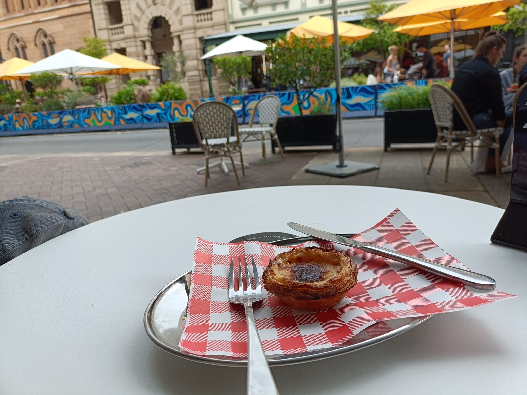 Сидим в кафе, наслаждаемся пироженкой, видом и кофе