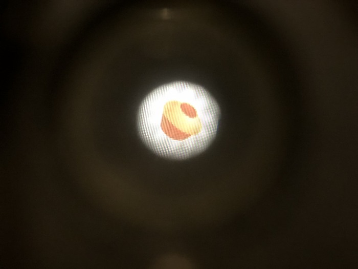-Набор линз увеличения как такового не имеет, сфоткал логотип через устройство как через объектив, практически в "упор", при удалении фокус теряется.