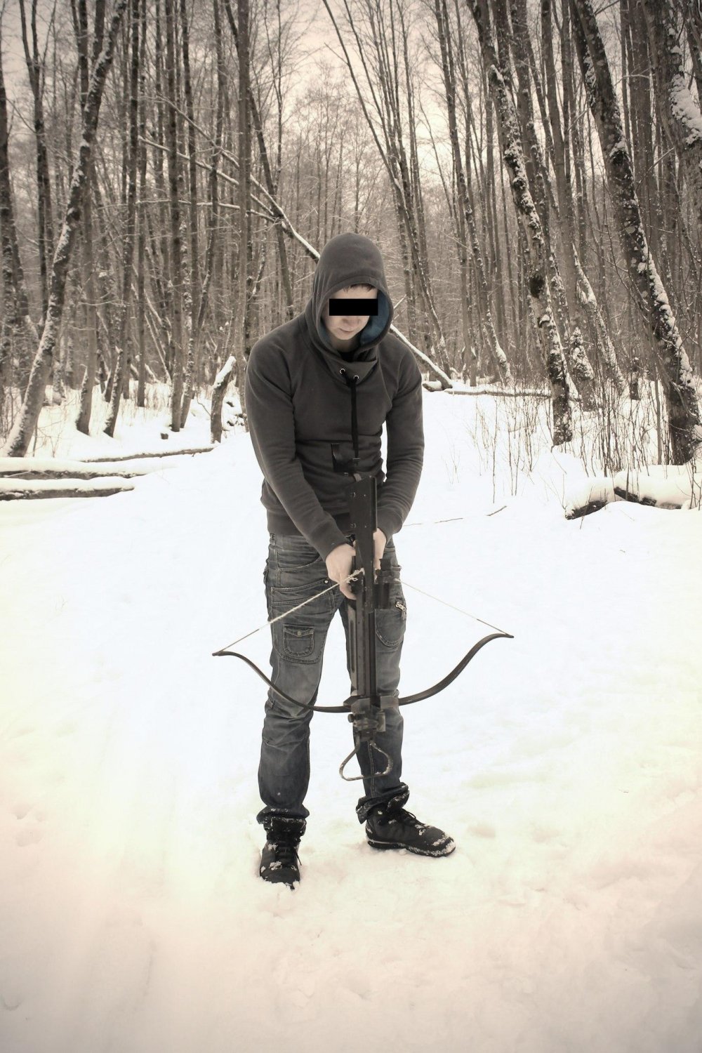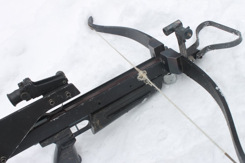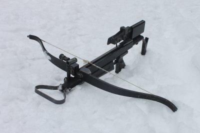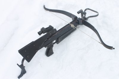 да я вот из-за арбалета этого и зарегался) весит он как пулемет блин. килограм 7-8. все офигевают как в руки берут. из положения стоя больше 10ти болтов устаешь стрелять.