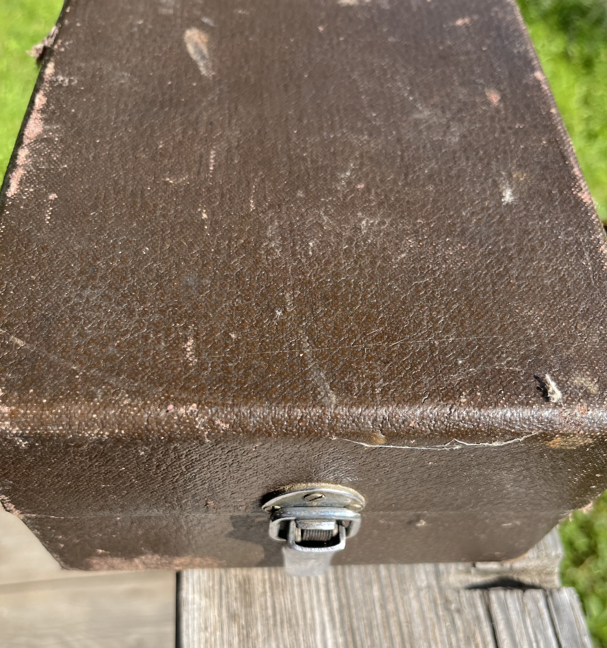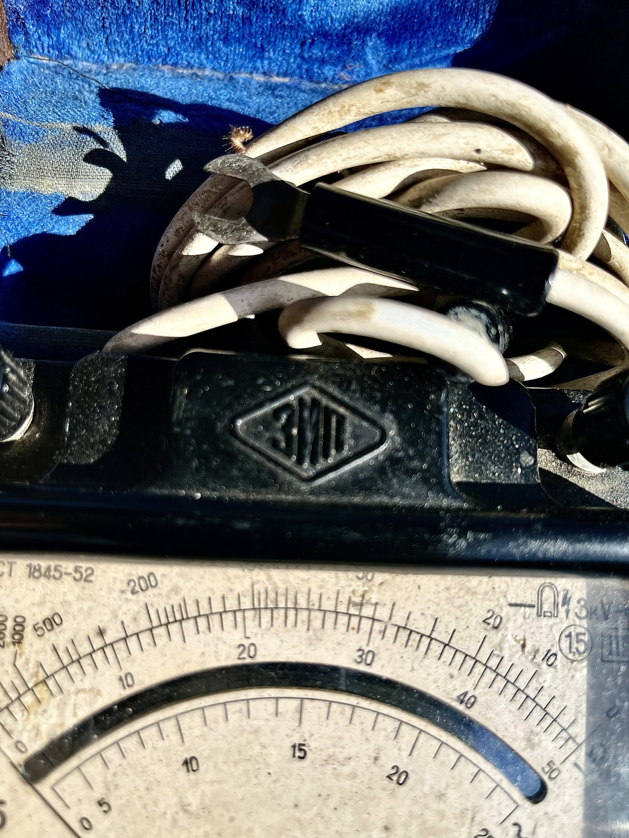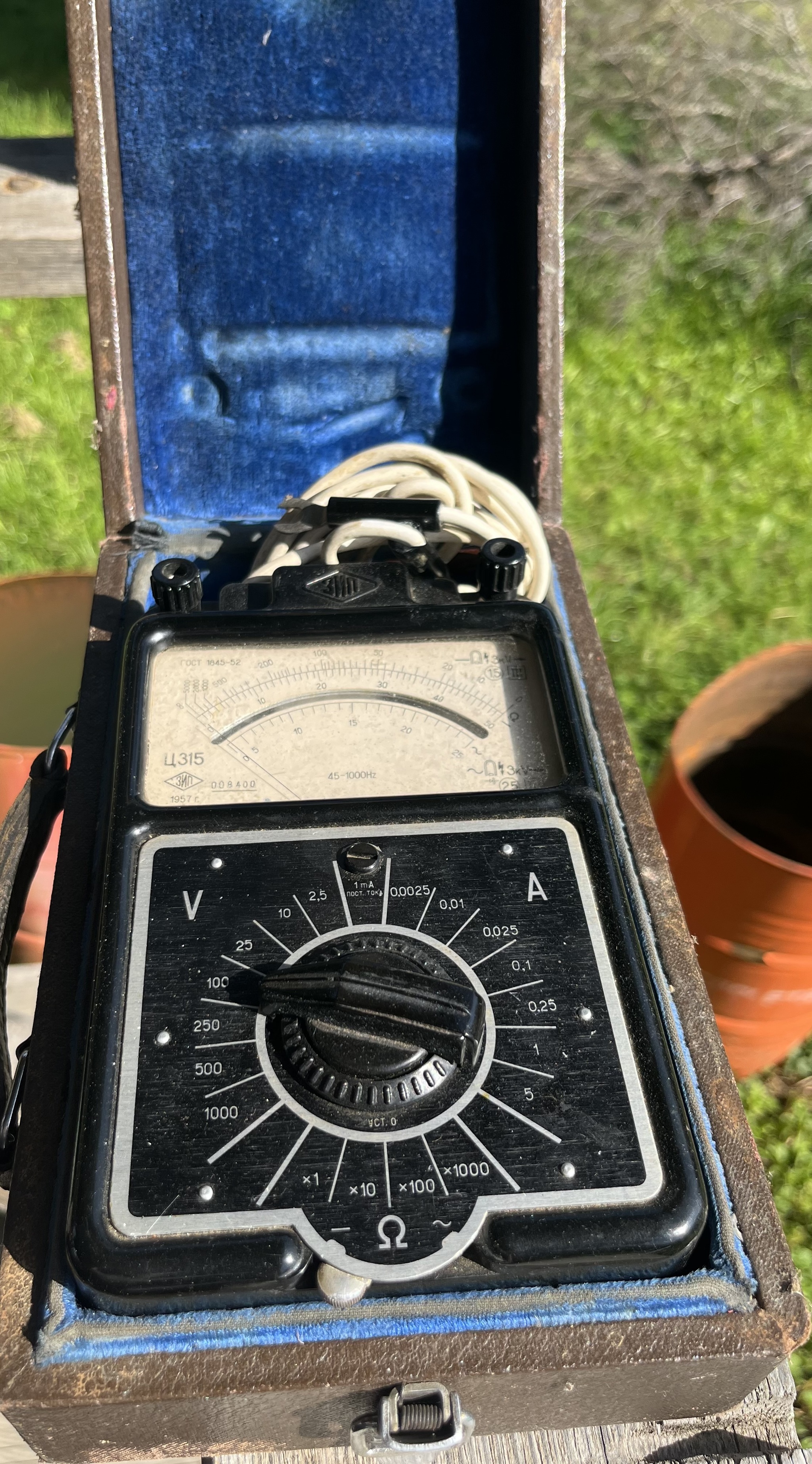 Продолжили разбирать сарай и обнаружился в нём любопытный прибор, в добротном чехле на защелке и внутри голубой бархат. По все видимости когда то давным давно прибор был не дешевым, коль уж так солидно оформили упаковку.