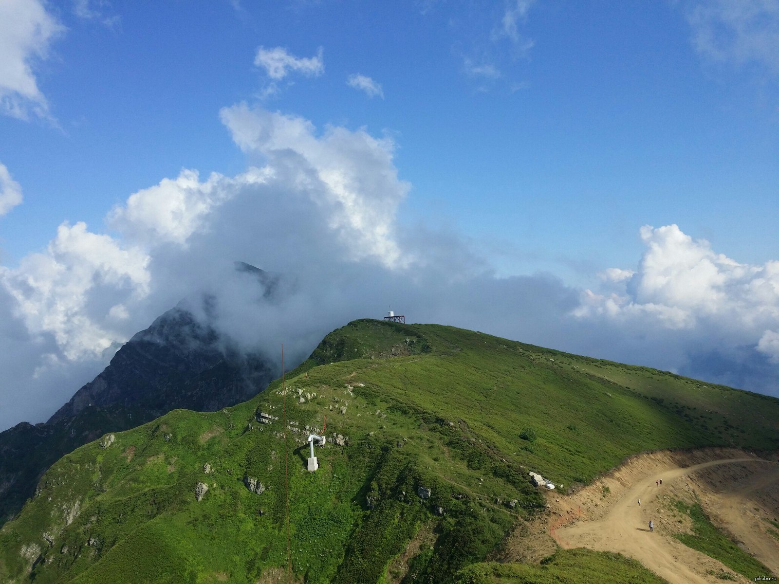 majern Что это за объект? Роза Хутор. 10 лет назад Друг вернулся с югов, был на смотровой площадке Розы Хутор, сфотографировал этот объект, находится в стороне от канатной дороги, кто может опознать, что это?! Сочи Не мое Роза Хутор Объект Строительство Непонятно