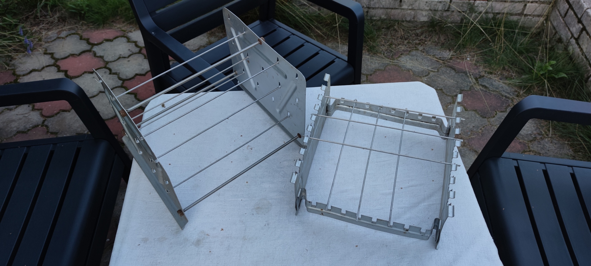 Спасибо коллективному разуму Пикабу, всё так и оказалось. Теперь у меня действительно груда понятного ненужного железа)) Это две сушилки для грибов, причем в изначальной комплектации одну на другую не поставить - нижняя меньше по размерам. Но если заменить родные боковины на лежавшие в комплекте очевидно самопальные, то пасьянс сходится просто идеально!