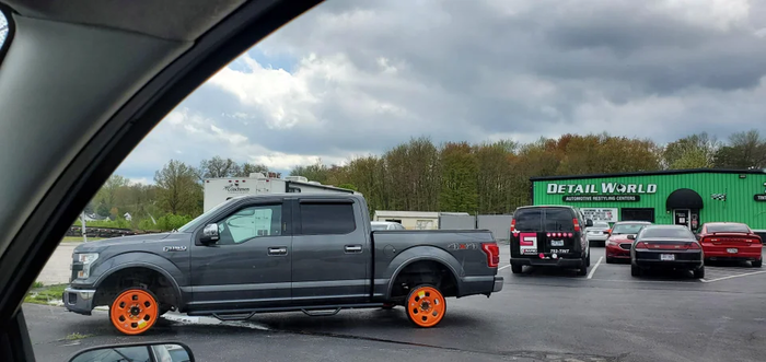 Специальные временные колеса, которые можно прикрутить к машине без колес и недалеко ее транспортировать.