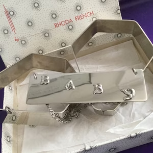 Это держатель для детского одеялка в коляску. "Браслеты" просто надевались на одеяло и боковую стенку коляски, фиксируя одеяло. Средняя пластина просто для красоты. Логика работы -