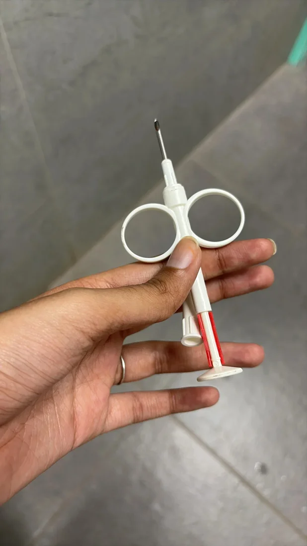 Это шприц для имплантации RFID-микрочипа под кожу животного. Устройство вводит крошечный бесконтактный чип, который потом читается сканером для идентификации. Делать должен ветеринар или обученный специалист. Зачем он у родителей?