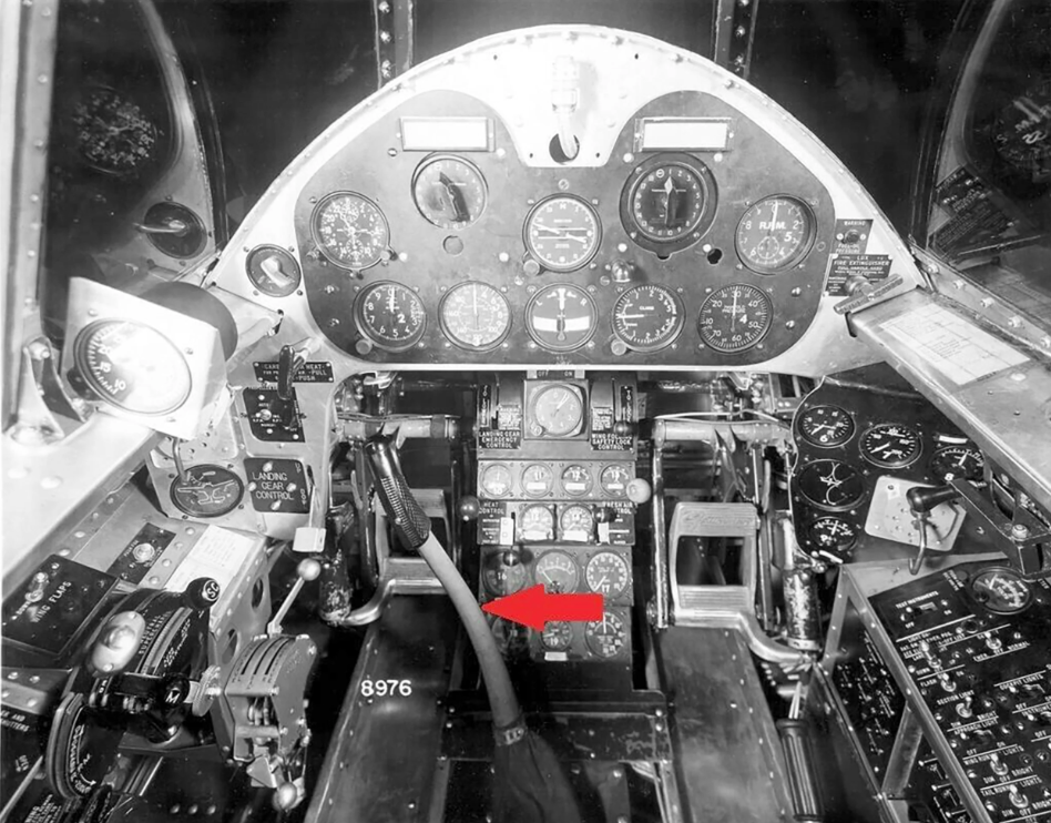А это джойстик, или, по-нормальному, ручка штурвала, которая использовалась в американских военных самолетах времен Второй мировой войны. Подобные применялись на самолетах ВМС США, включая такие модели, как F4F Wildcat, F4U Corsair и SB2C Helldiver.
