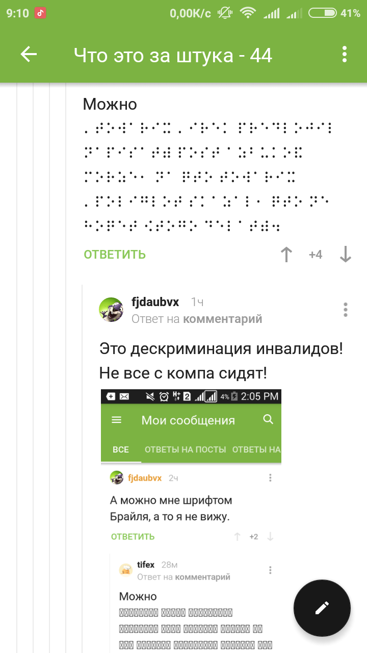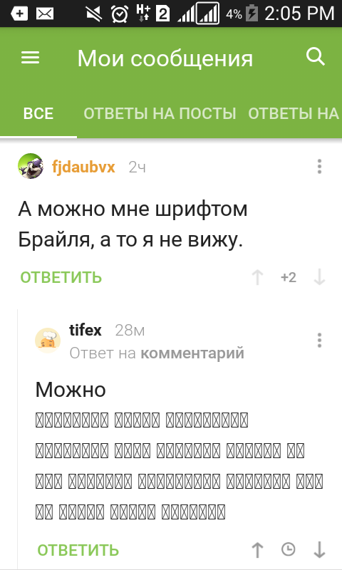 А можно мне шрифтом Брайля, а то я не вижу.