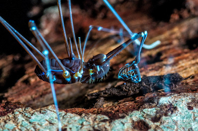 Это сенокосцы Gonyleptidae. Безвредны, но страшны. Да, такие косиножки тоже бывают.