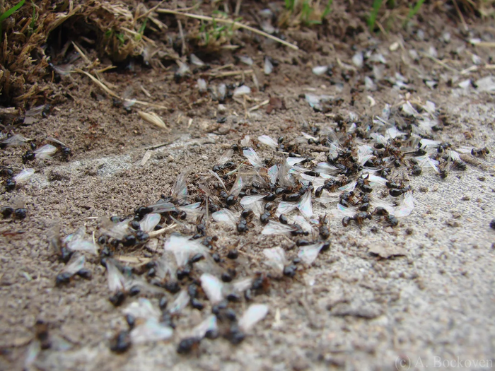 С конца июля по начало августа, когда погода тёплая и влажная, наступает сезон размножения. Вся крылатая братия выползает из своих муравейников и поднимается в воздух. Самец ставит себе единственную цель — оплодотворить самку. Семя, полученное во время оргии, барышни будут хранить до смерти — за всю свою жизнь муравьи спариваются только один раз.