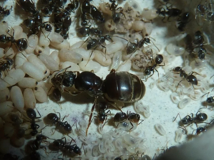 Начнём с быстрого ликбеза. Колония муравьёв — это высокоорганизованное сообщество, можно сказать, суперорганизм. Всем заправляет матка а.к.а королева — мать-основательница насекомьего общества. Она без устали клепает рабочий класс — бесплодных самок. Пролетариат образует свою закрытую тусовку с делением на касты и социальным неравенством, но мы тут не за этим. Мы здесь за тем, чтобы обсудить муравьиный интим.