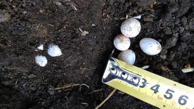 Копал сегодня яму в деревне, обнаружил некие белые яйца в толще земли, на глубине 100 мм. Товарищи биологи подскажите, что это и кто отложил?